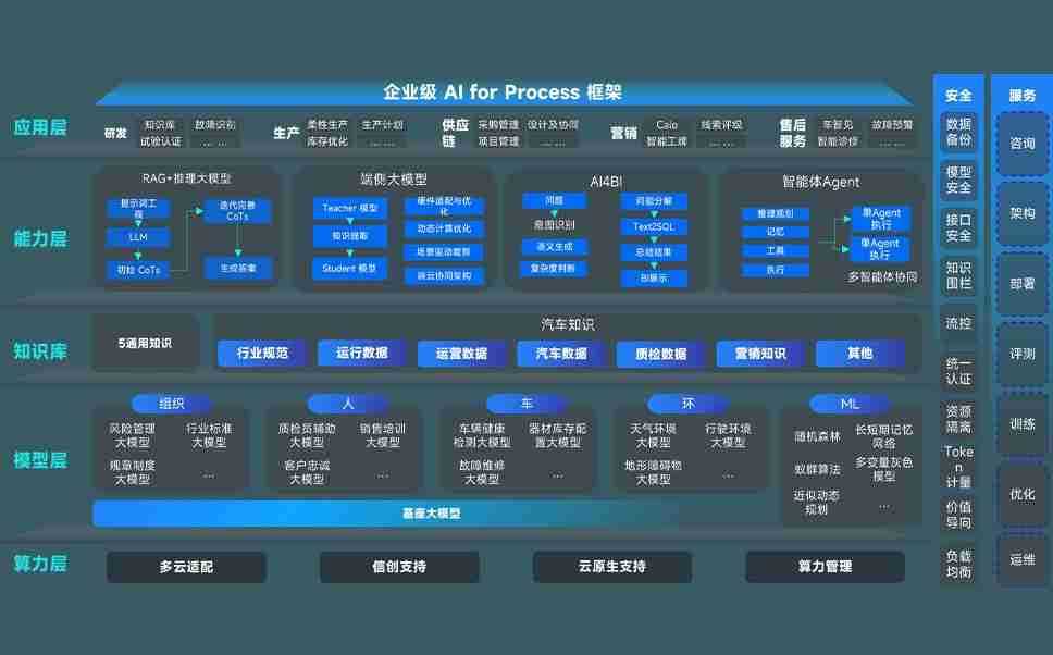PA旗舰厅问学智车解决方案是一套基于AI技术的汽车行业智能化系统,,覆盖从底层算力到顶层AI应用的全栈方案。。。方案由算力层、、模型层和应用层组成:算力层,,,,方案支持多种一体机配置,,,,具备云端灵活部署、、、、多云适配以及动态优化计算资源的能力;模型层,,PA旗舰厅问学平台版提供了企业级AI应用一站式构建与管理平台,,支持基于后训练强化技术的汽车企业专属模型的训练、、、评测和运营;应用层,,,PA旗舰厅问学DeepSeek版提供包括超级员工、、智能招采、、、、智能营销、、、智能客服、、AI for BI等一系列解决方案,,可助力汽车行业实现数字化转型,,,,让管理更智能、、、、响应更敏捷。。。。